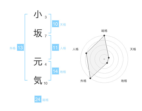 小坂 元気さんの総格は24画の5点!