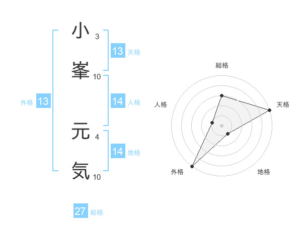 小峯 元気さんの天格は13画の5点!
