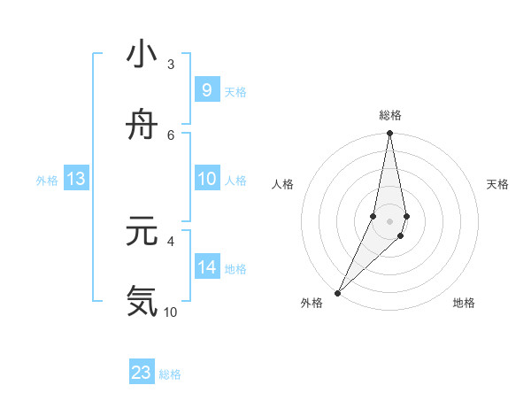 小舟 元気さんの総格は23画の5点!