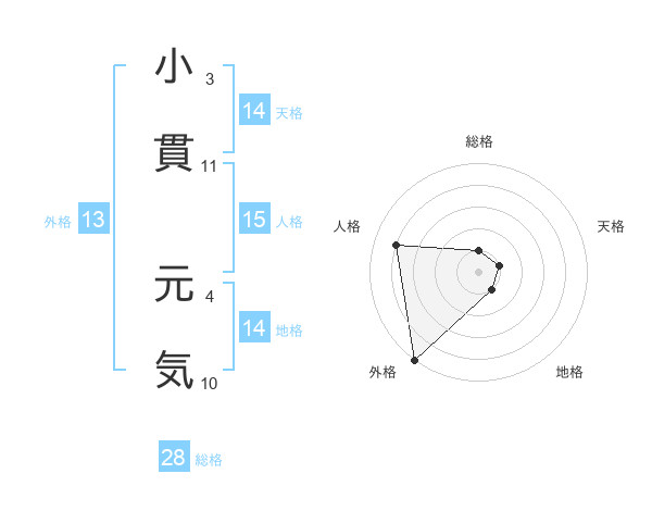 小貫 元気さんの人格は15画の4点!