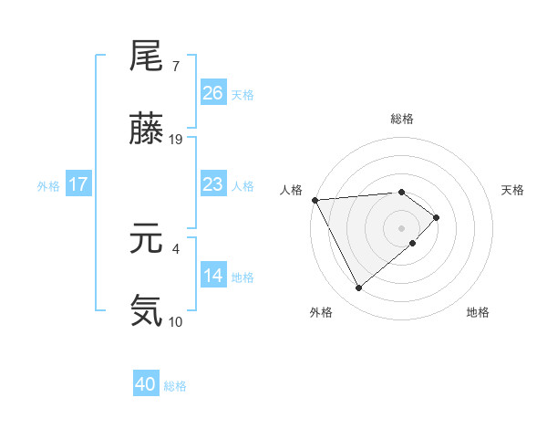 尾藤 元気さんを姓名の画数から五運を鑑定