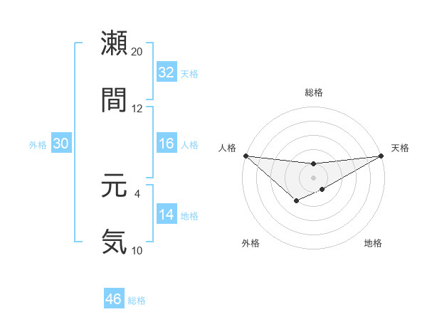 瀬間 元気さんの天格は32画の5点!