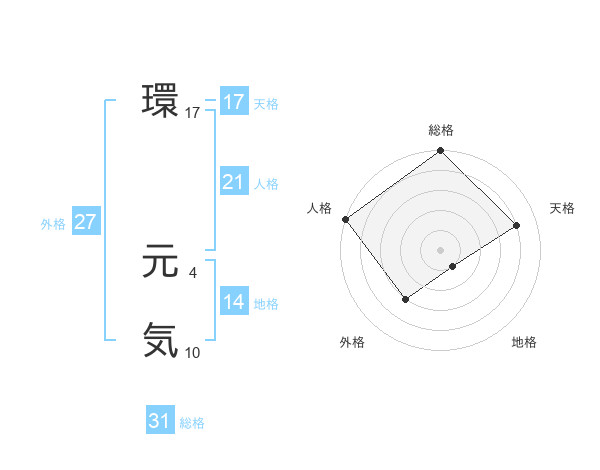 環 元気さんの天格は17画の4点!