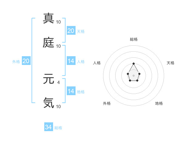 真庭 元気さんの総格は34画の2点!