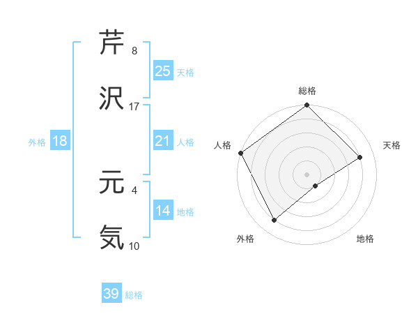 芹沢 元気さんを姓名の画数から五運を鑑定