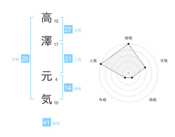 高澤 元気さんの総格は41画の5点!