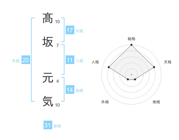 髙坂 元気さんの総格は31画の5点!