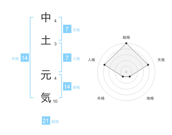 中土 元気さんの総格は21画の5点!