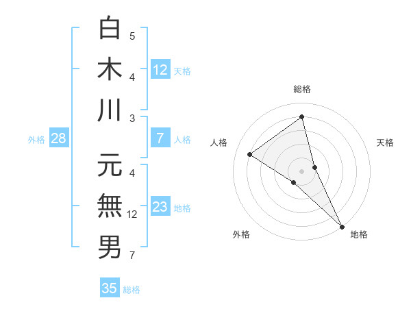 白木川 元無男さんを姓名の画数から五運を鑑定