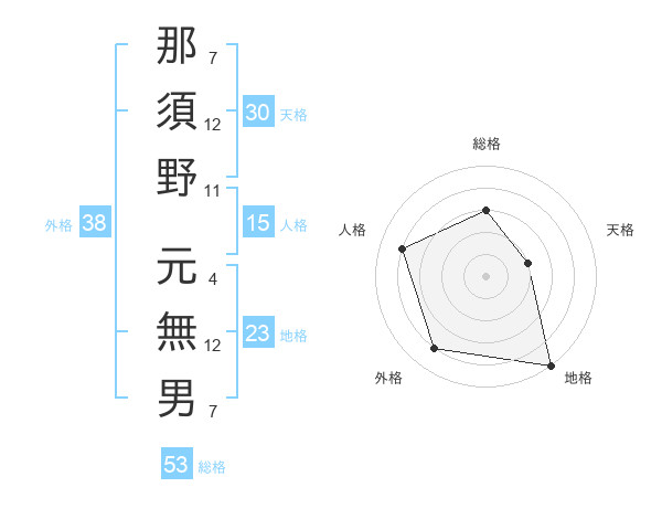 那須野 元無男さんを姓名の画数から五運を鑑定