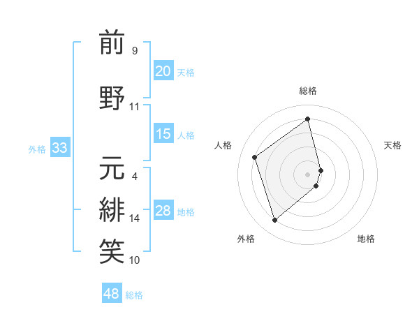 前野 元緋笑さんを姓名の画数から五運を鑑定