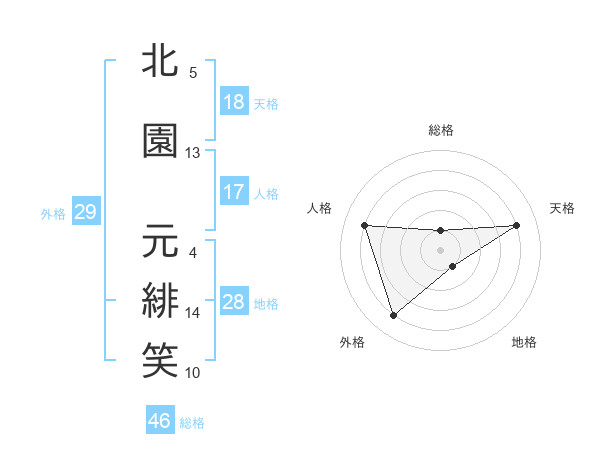 北園 元緋笑さんの外格は29画の4点!