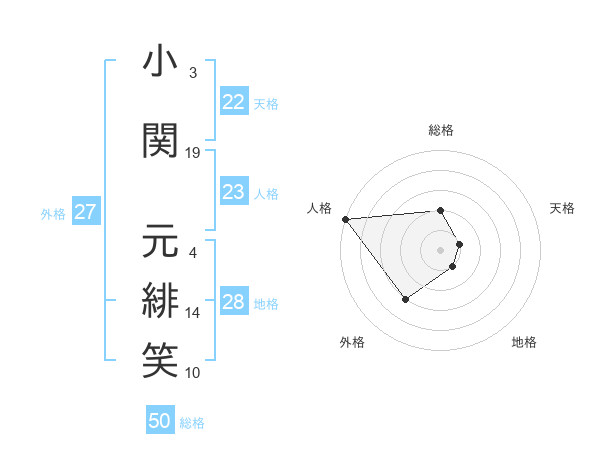小関 元緋笑さんの総格は50画の2点!