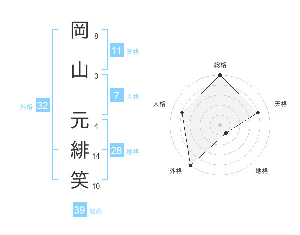 岡山 元緋笑さんの外格は32画の5点!