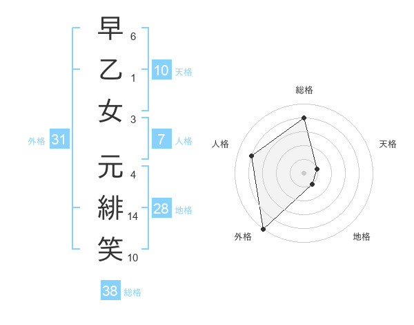 早乙女 元緋笑さんの総格は38画の4点!