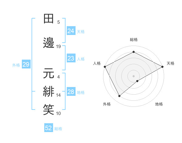 田邊 元緋笑さんを姓名の画数から五運を鑑定