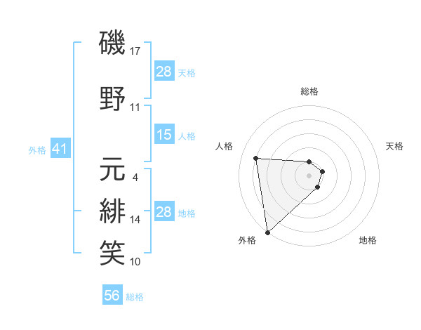 磯野 元緋笑さんの外格は41画の5点
