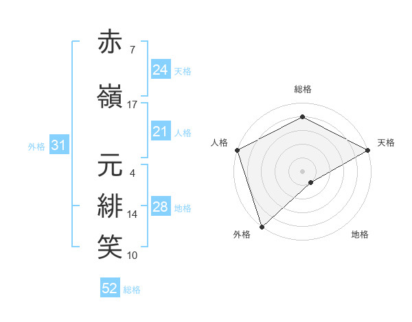 赤嶺 元緋笑さんを姓名の画数から五運を鑑定