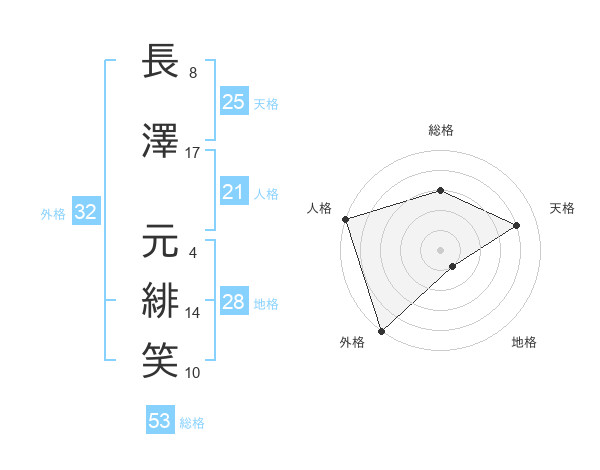 長澤 元緋笑さんを姓名の画数から五運を鑑定