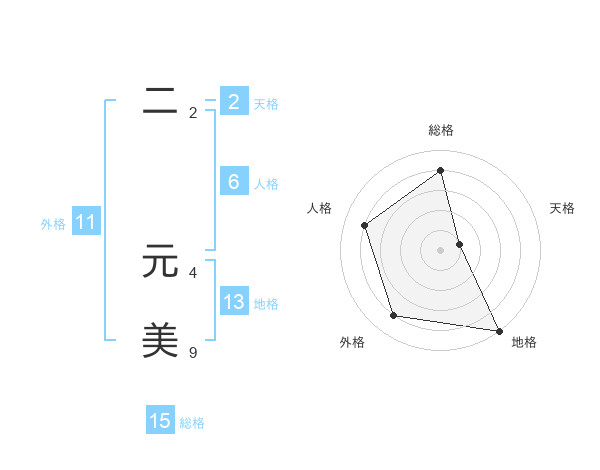 二 元美さんの総格は15画の4点!