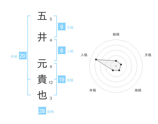 五井 元貴也さんを姓名の画数から五運を鑑定