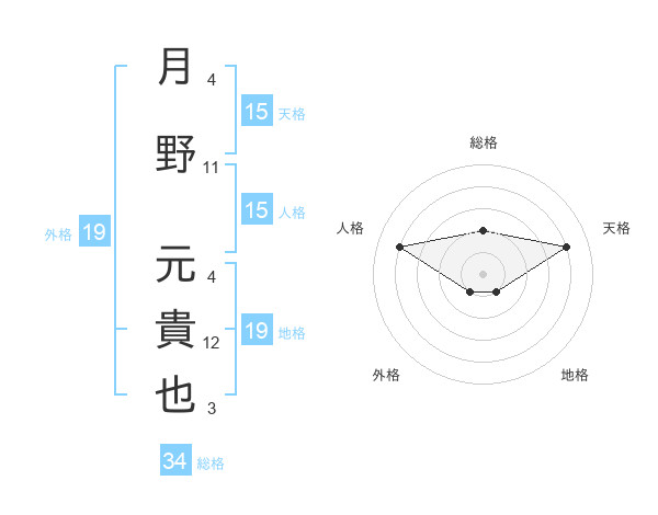 月野 元貴也さんを姓名の画数から五運を鑑定