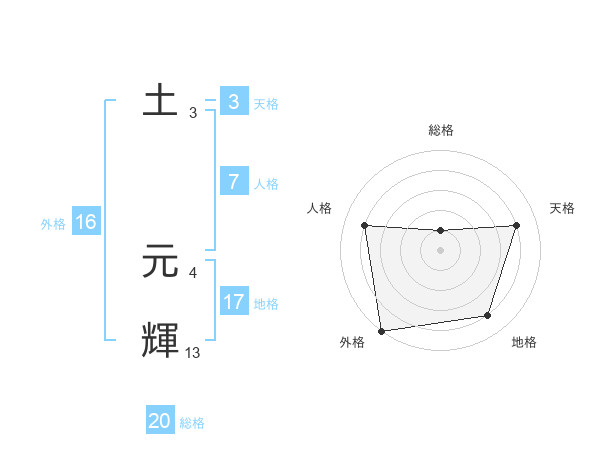 土 元輝さんの総格は20画の1点!