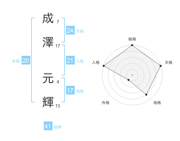 成澤 元輝さんを姓名の画数から五運を鑑定