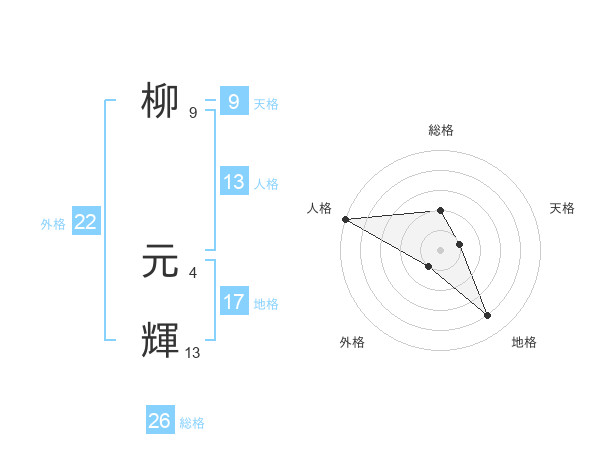 柳 元輝さんの総格は26画の2点!