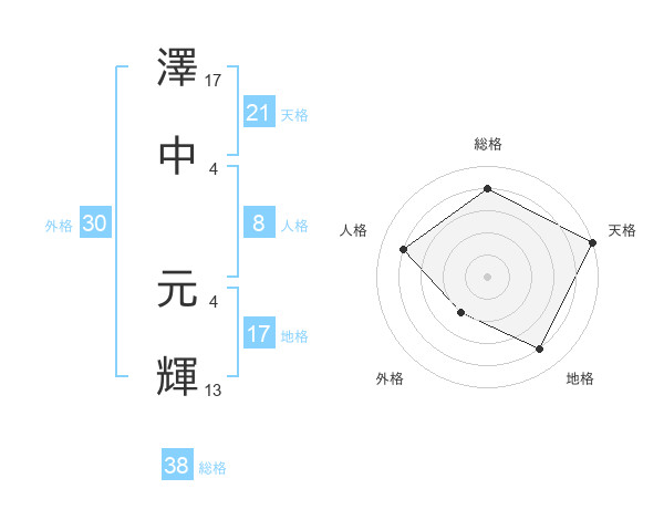 澤中 元輝さんの総格は38画の4点!