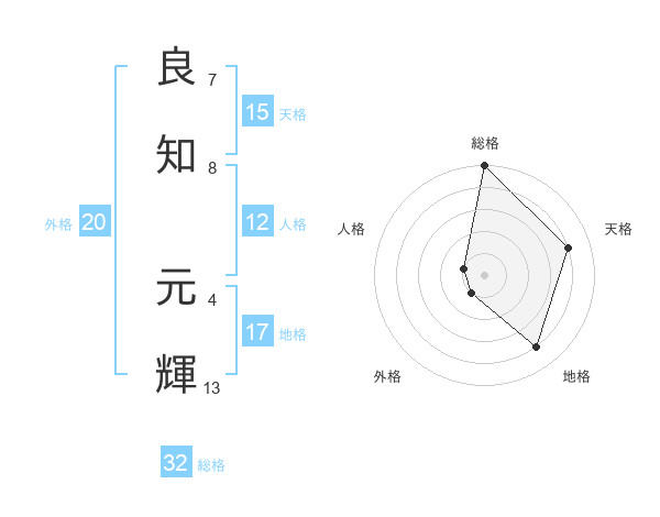 良知 元輝さんの総格は32画の5点!