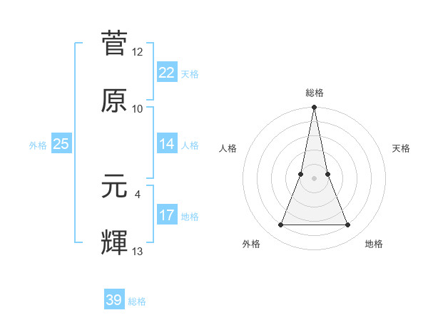 菅原 元輝さんの総格は39画の5点!