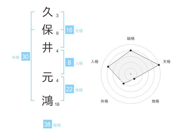 久保井 元鴻さんを姓名の画数から五運を鑑定