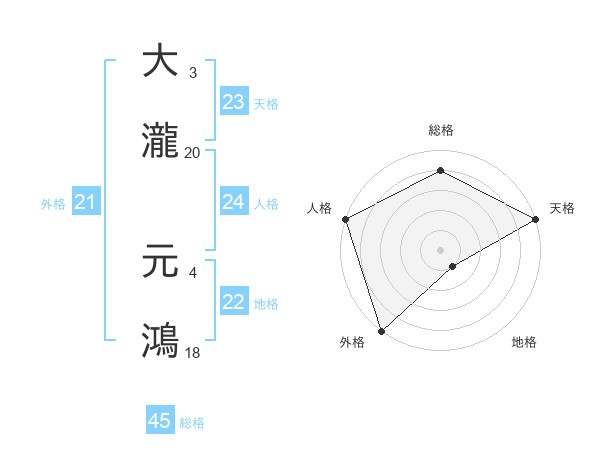 大瀧 元鴻さんの天格は23画の5点!