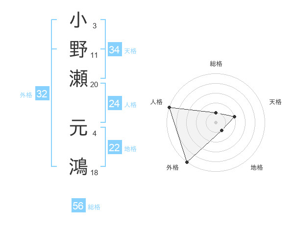 小野瀬 元鴻さんを姓名の画数から五運を鑑定