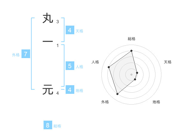 丸一 元さんの総格は8画の4点!