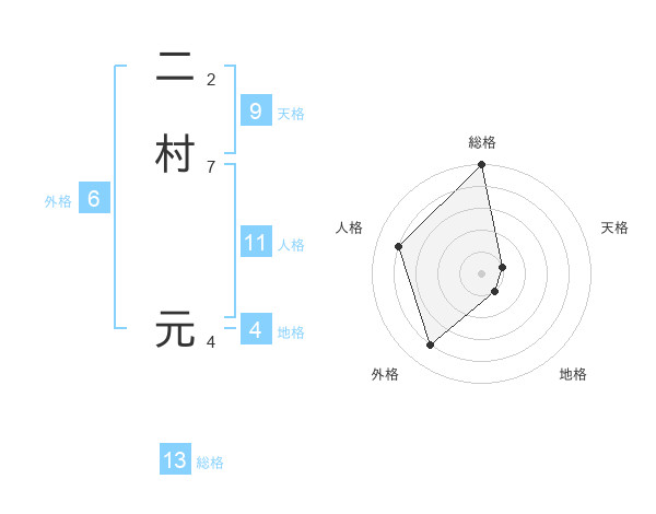二村 元さんの総格は13画の5点!