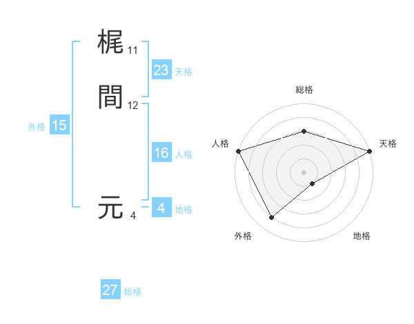 梶間 元さんの天格は23画の5点!