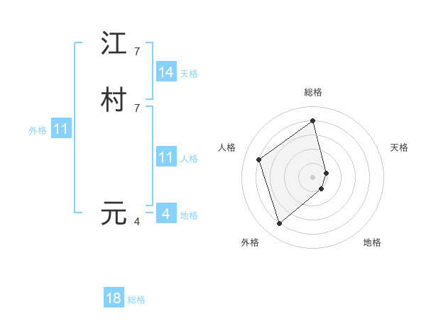 江村 元さんの総格は18画の4点!
