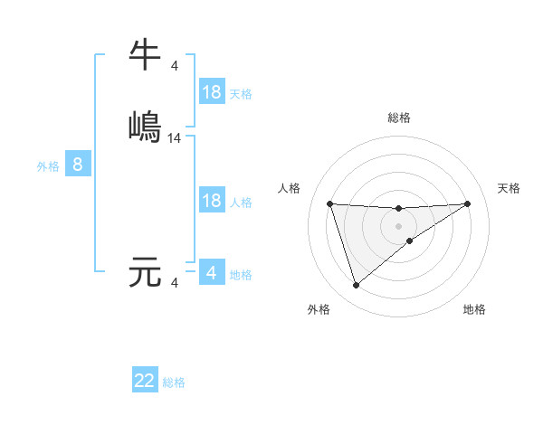 牛嶋 元さんの総格は22画の1点!