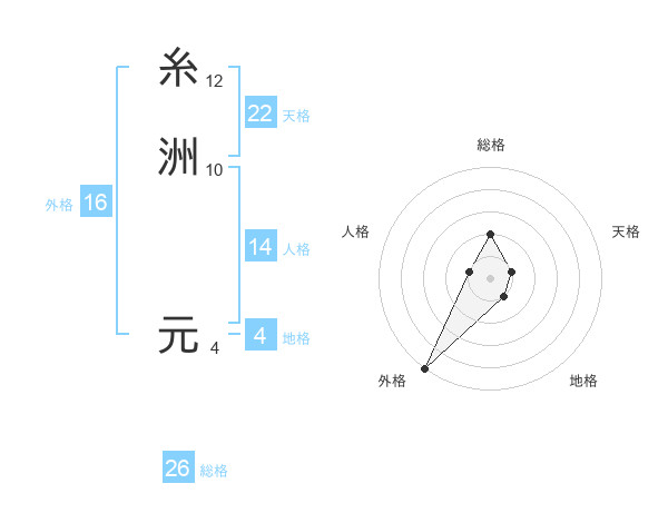 糸洲 元さんの総格は26画の2点!