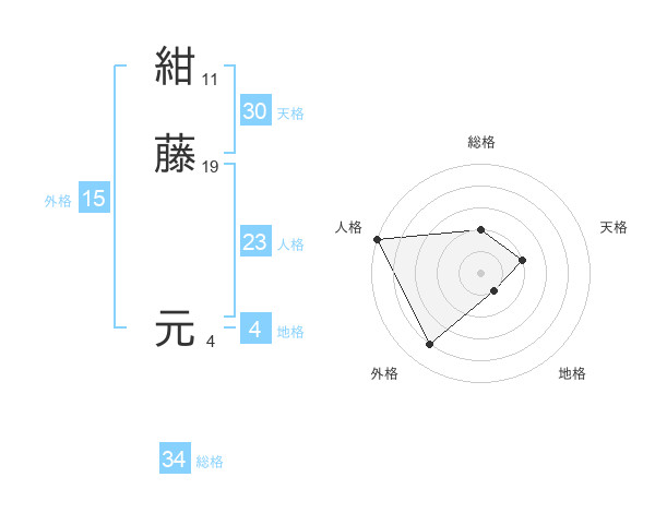 紺藤 元さんの総格は34画の2点!