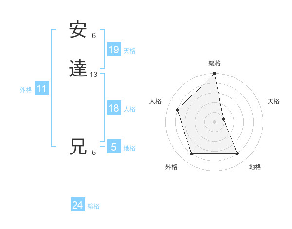 安達 兄さんの総格は24画の5点!