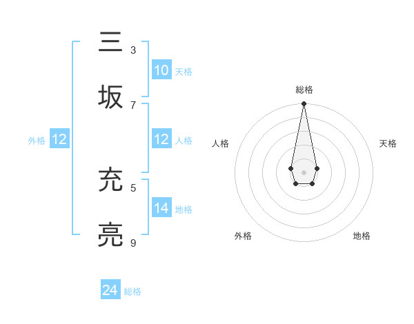 三坂 充亮さんの総格は24画の5点!