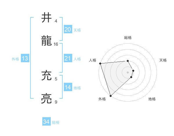 井龍 充亮さんを姓名の画数から五運を鑑定