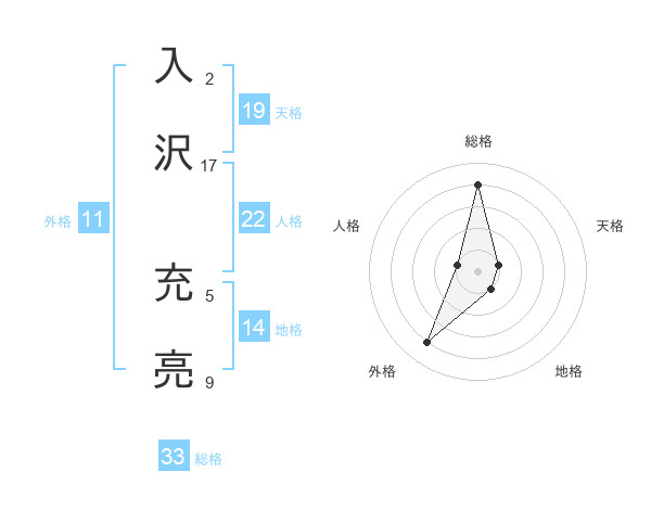 入沢 充亮さんを姓名の画数から五運を鑑定