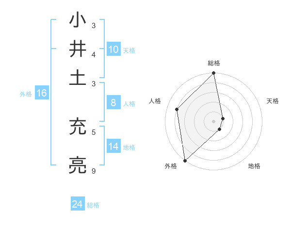 小井土 充亮さんの総格は24画の5点!
