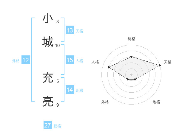 小城 充亮さんの総格は27画の3点!