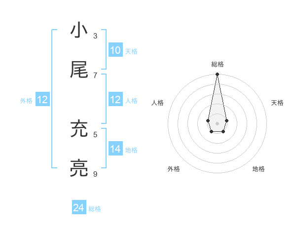 小尾 充亮さんの総格は24画の5点!