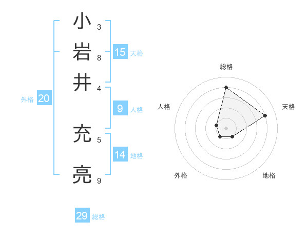 小岩井 充亮さんの総格は29画の4点!